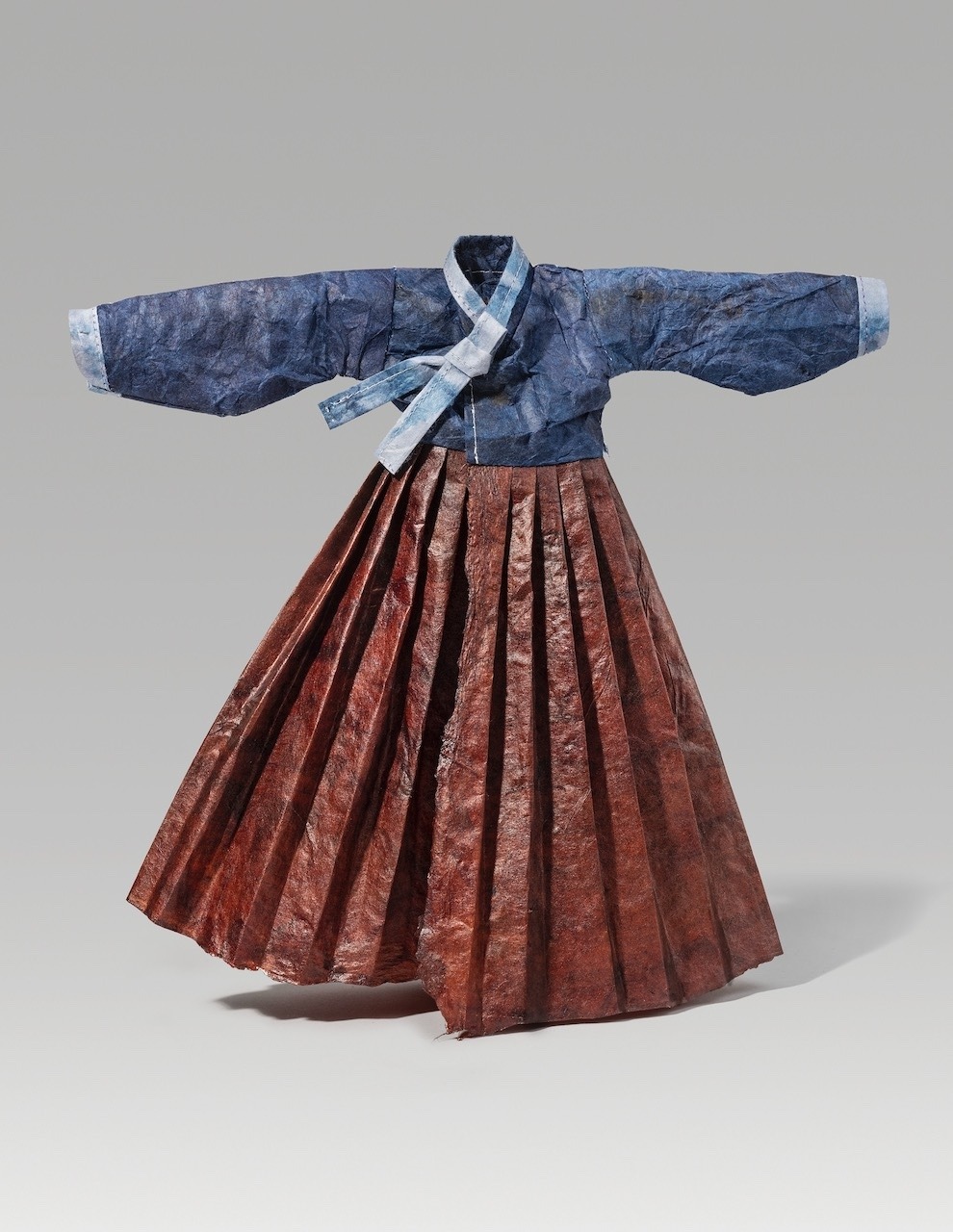 Dancing (2025). Indigo and kakishibu on hanji, thread. 10.5 x 11 x 2”.