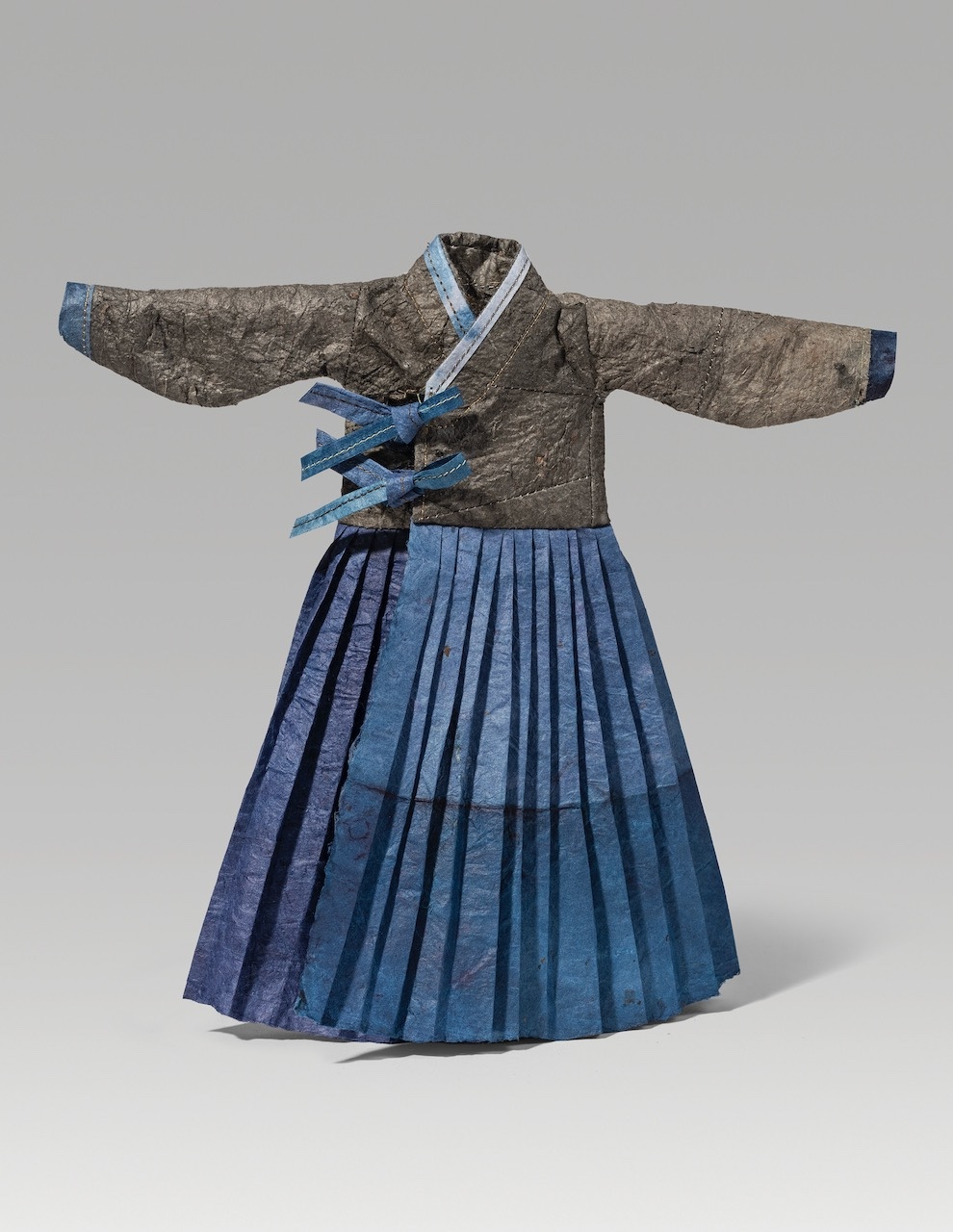 Rebuilding (2025). Ink and indigo on hanji, thread. 10 x 10.25 x 1”.